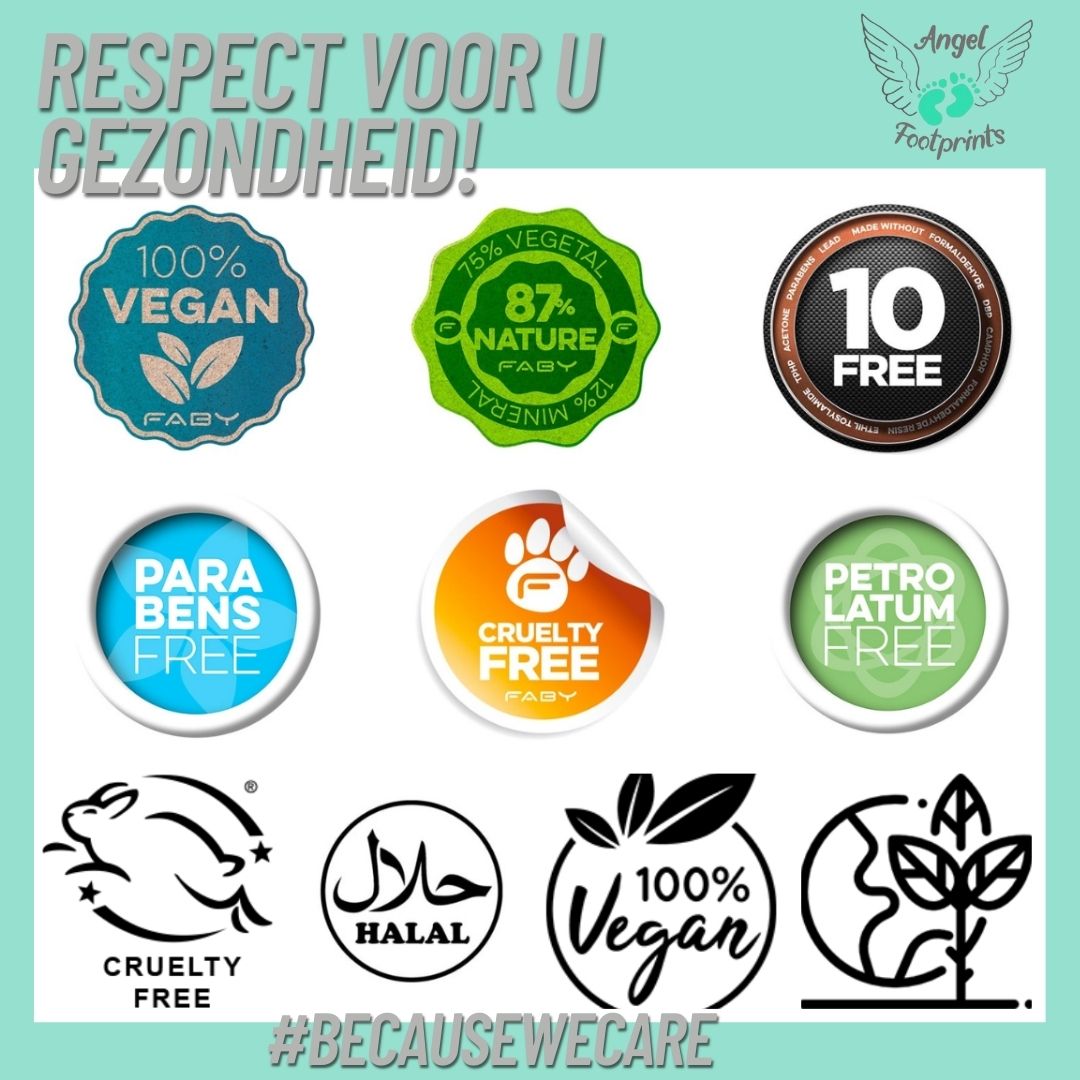 Bij Angel Footprints geloven we in het gebruik van natuurlijke producten, niet alleen voor de gezondheid van je voeten, maar ook voor de gezondheid van onze planeet. Daarom werken we uitsluitend met dierproefvrije producten die geen parabenen, SLS (Sodium Lauryl Sulfate) en genetisch gemodificeerde plantextracten bevatten. We kiezen voor producten die veilig zijn voor jou en het milieu.