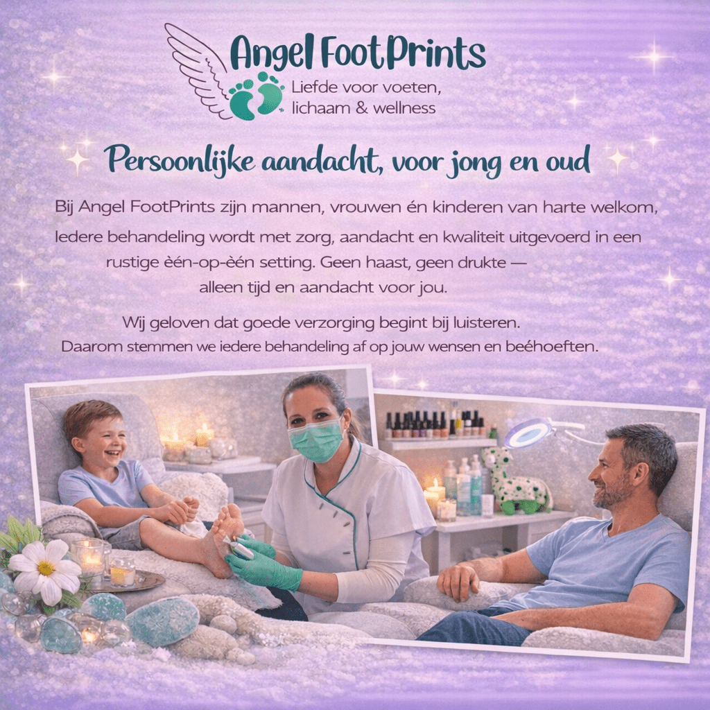 Met een cadeaubon van Angel Footprints geef je een moment van rust, verzorging en verwennerij.