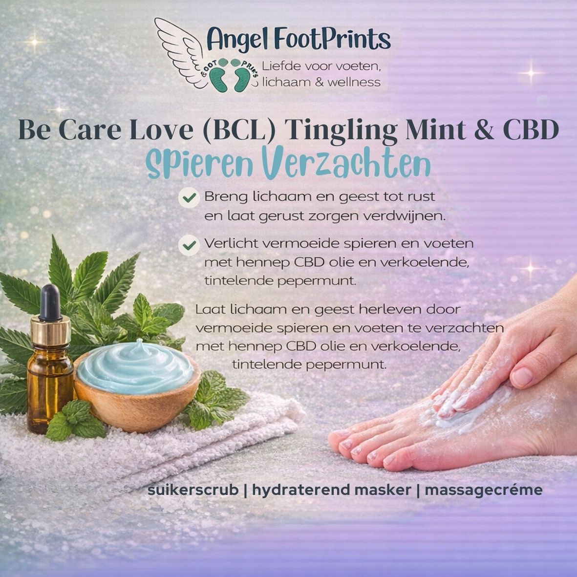 Bij Angel FootPrints geloven we dat echte verzorging begint met aandacht — niet alleen voor je voeten, maar voor je hele lichaam en welzijn. Onze Be Care Love (BCL) Spa-producten zijn met liefde samengesteld om je huid te verzorgen, te ontspannen en je zintuigen te verwennen.