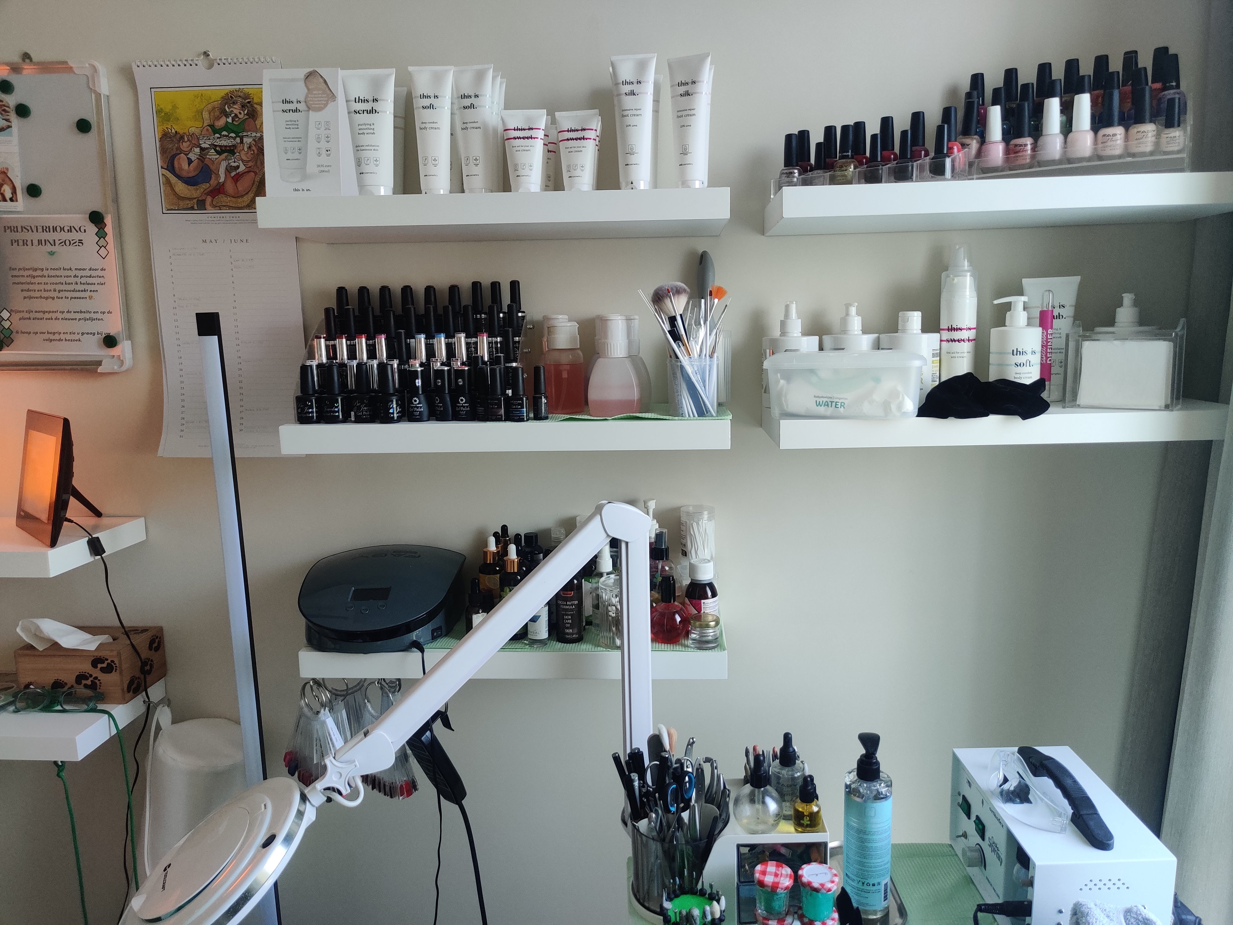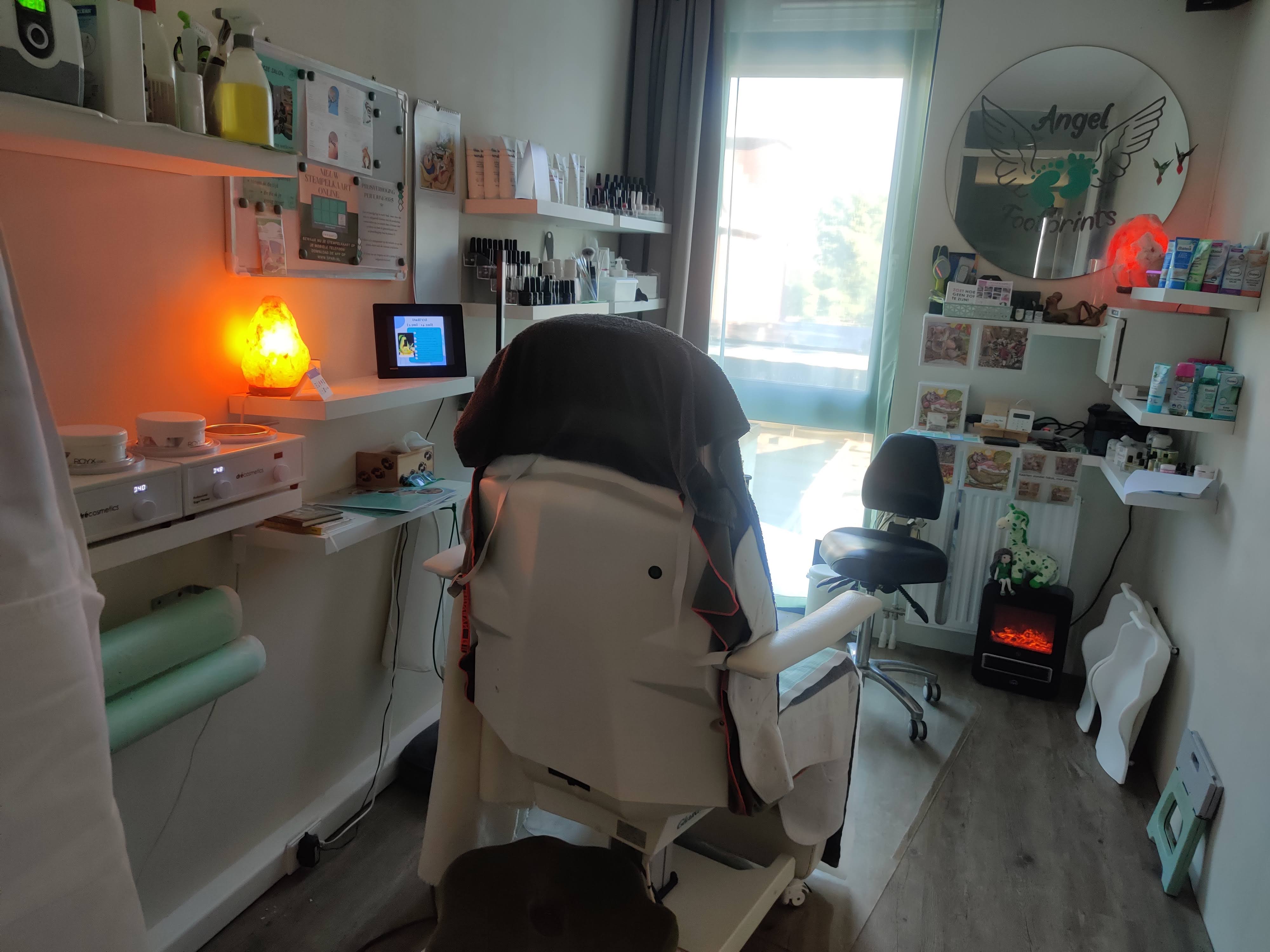 Bij binnenkomst word je verwelkomd in een rustgevende sfeer: zachte muziek op de achtergrond, brandende zoutlampen en een ontspannen ambiance. Dit is jouw verwenmoment – speciaal voor je voeten én voor jezelf.