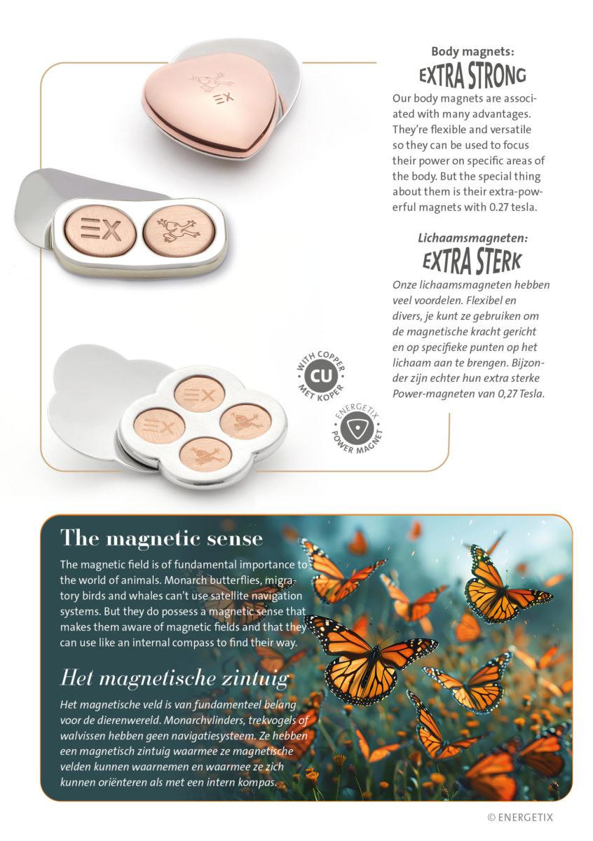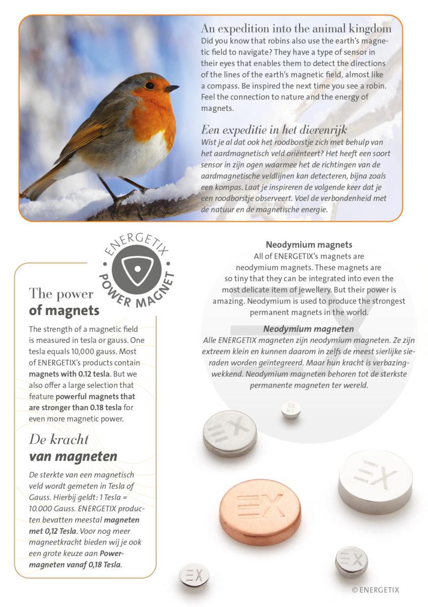Energetix maakt gebruik van zeer krachtige magneten. Het zijn elektrisch opgeladen Neodymium magneten. De sterkte van de gebruikte magneten is meestal 1200 Gauss. Onze NEODYMIUM magneten hebben een levenslange garantie op hun magnetische werking. Neodymium verliest slechts 1 % van zijn kracht in 100 jaar.