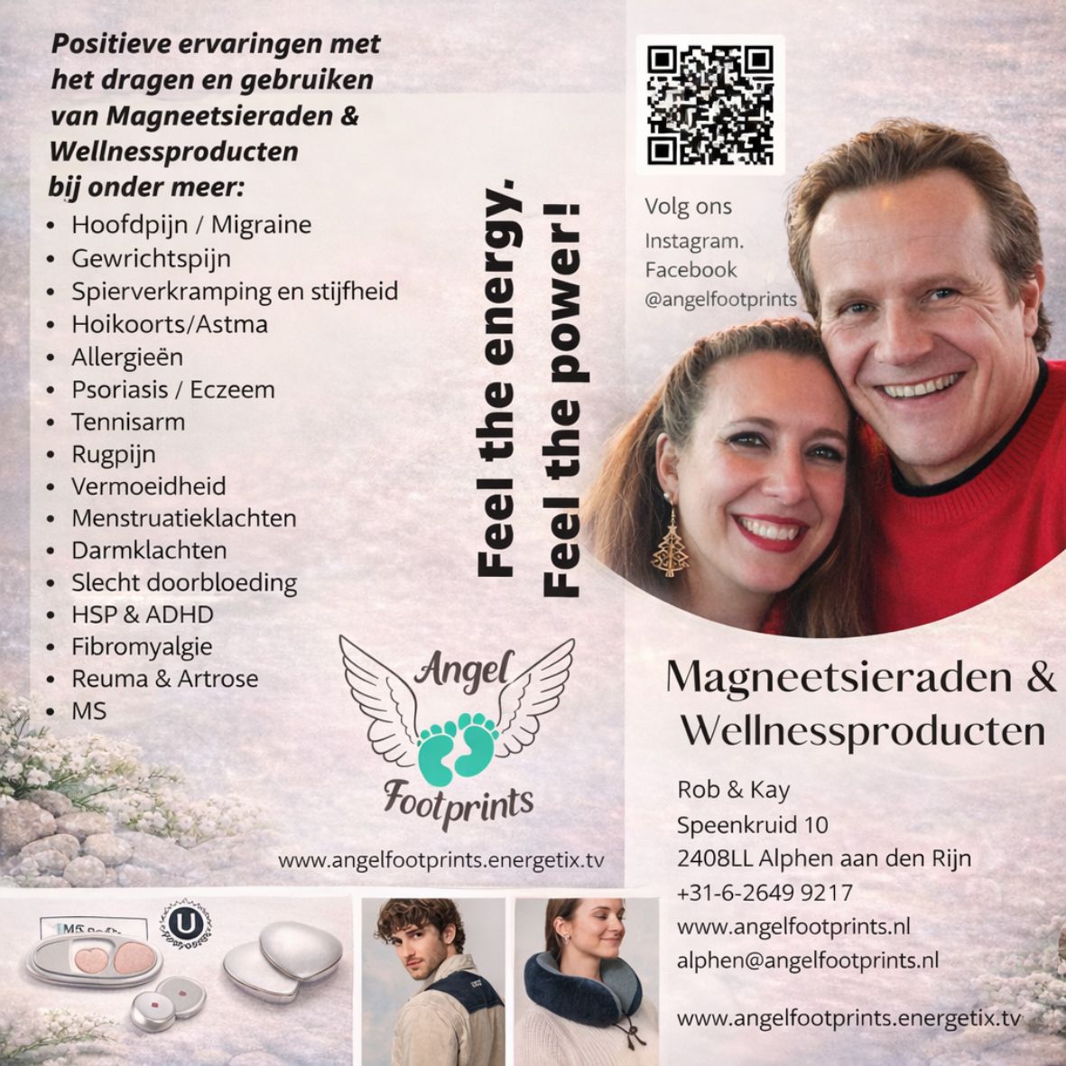 Bij Angel FootPrints bieden we dan ook met trots een selectie Energetix Bingen magneetsieraden en wellnessproducten — ontworpen om je welzijn subtiel te versterken, moeiteloos in te dragen en elke dag opnieuw te ervaren.