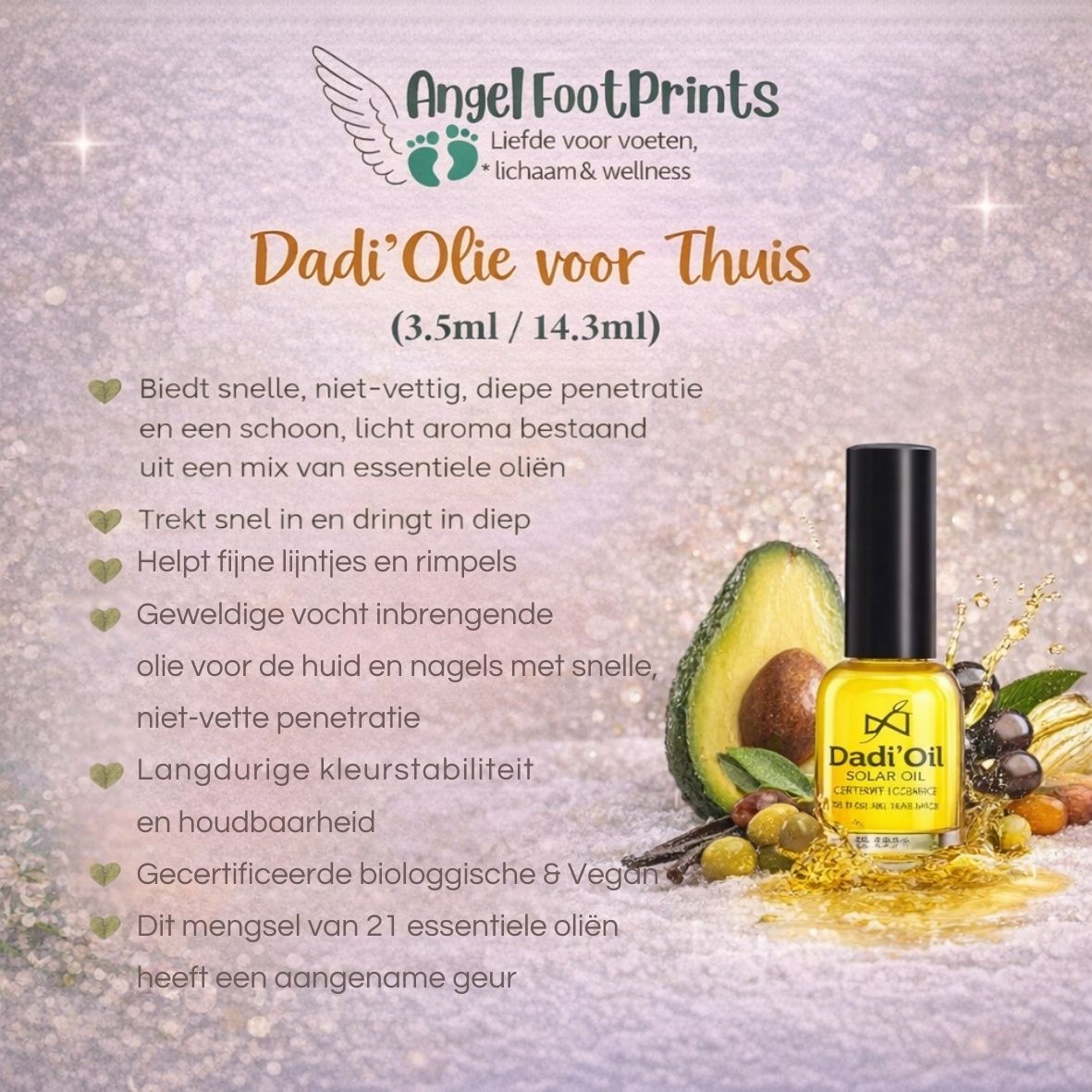 Bij Angel FootPrints gebruiken we zorgvuldig geselecteerde nagelolies die je nagels én nagelriemen verzorgen, hydrateren en beschermen. Deze oliën zijn ideaal als onderdeel van je dagelijkse verzorgingsroutine, voor én na nagel- of pedicurebehandelingen.